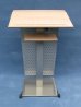 - Plaque perforée en acier inoxydable brossé mat, forme trapézoïdable.